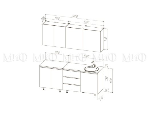 Кухонный гарнитур Челси 2,0 м Компановка 2 (Миф)